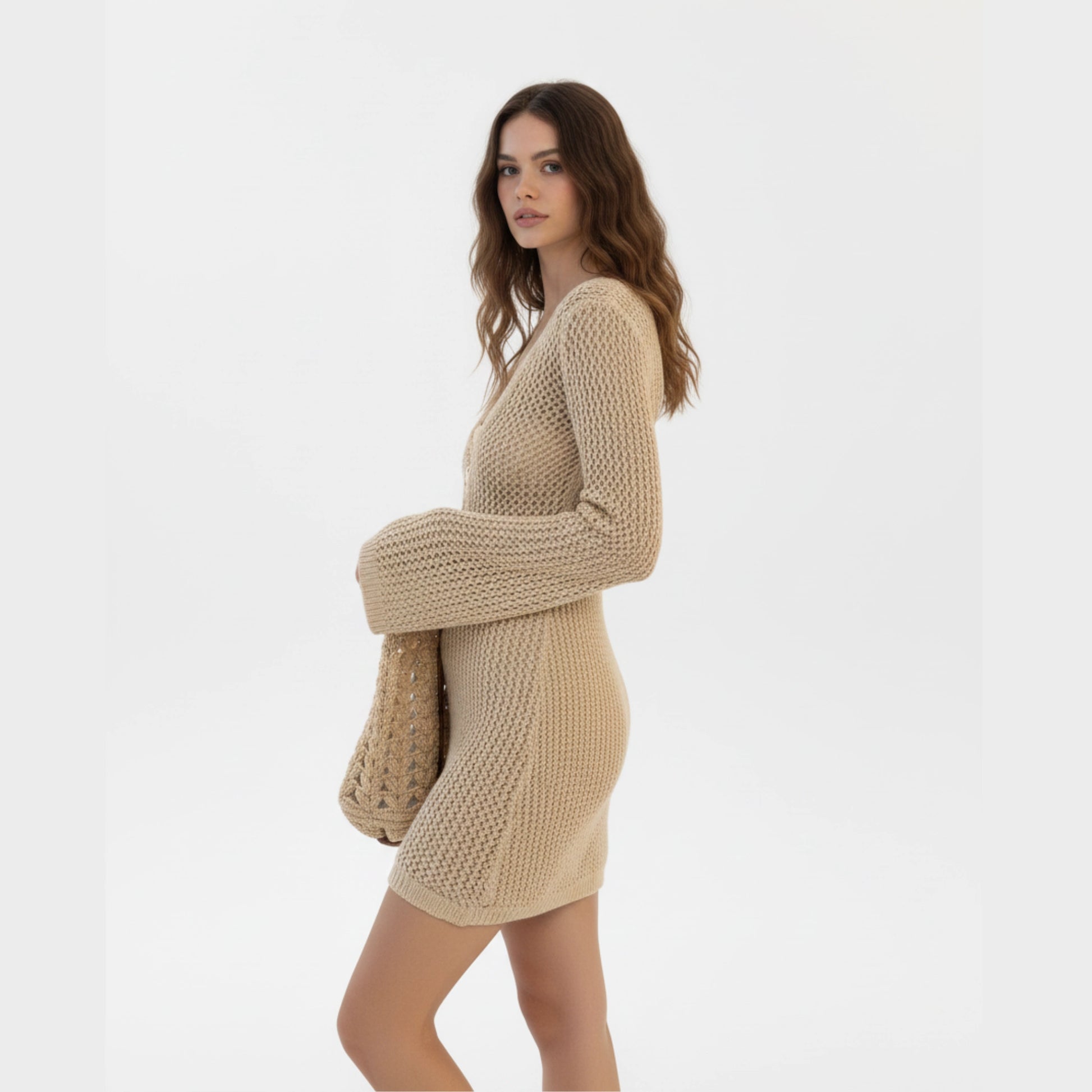Confeccionado em 100% poliéster com malha knit, o vestido possui toque macio e excelente caimento. O detalhe vazado (cutout/hollow) adiciona charme e sofisticação, enquanto o decote em V alonga a silhueta e traz um ar feminino e atual. A cor khaki é versátil e combina facilmente com biquínis, sandálias e acessórios de verão. Perfeito para quem procura um vestido de verão feminino estiloso, essa peça une conforto, tendência e versatilidade para compor looks incríveis na praia ou na cidade ☀️👗